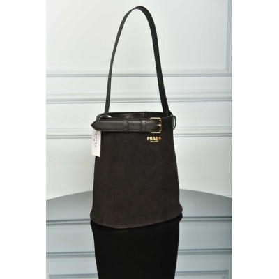 Prada Buckle Belted Suede Bucket Bag